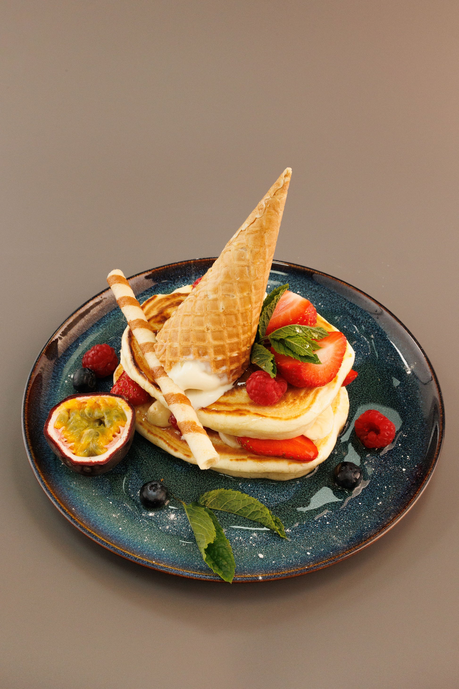 Satisfy your cravings with these fluffy rounds of joy. Made from scratch, our pancakes are the perfect mix of sweet and savory. Whether it's for breakfast, brunch, or a late-night snack, these pancakes will leave your taste buds wanting more!